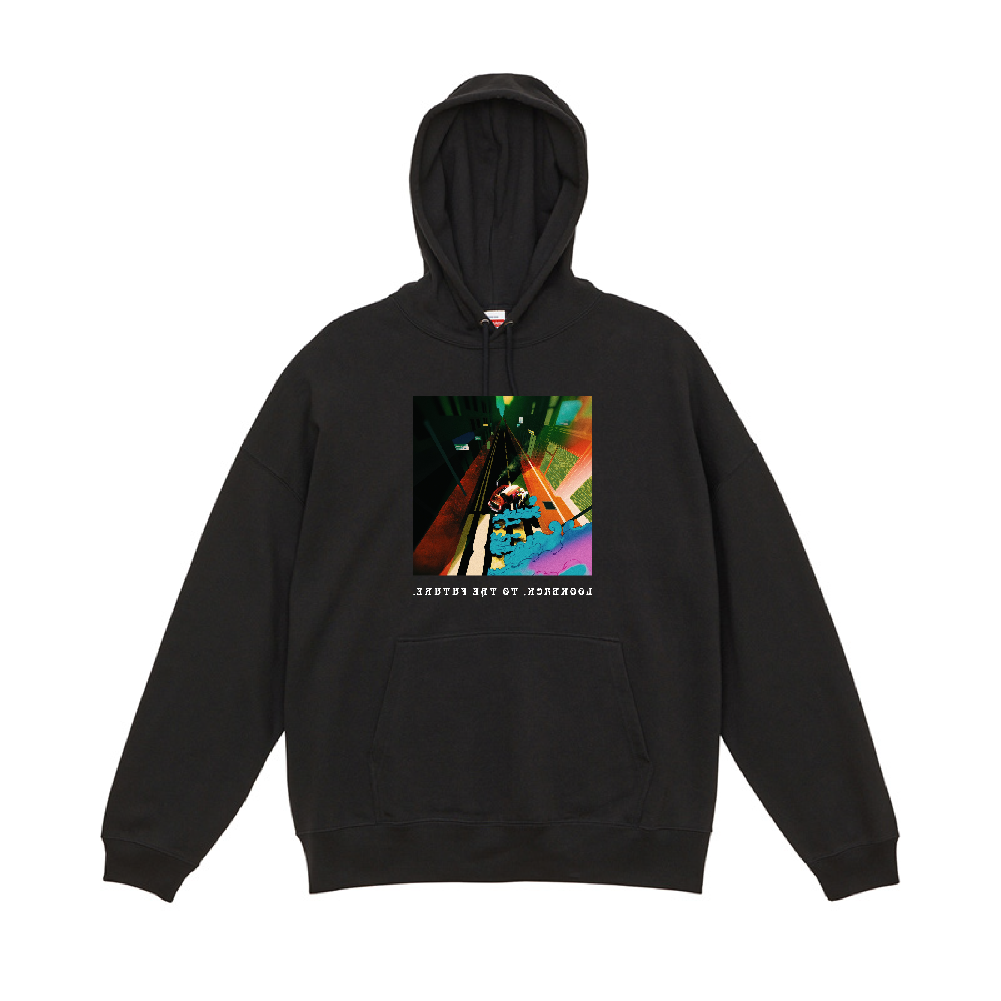 “LOOKBACK TO THE FUTURE”のアナザージャケットを、フロントに大胆にプリントしたスペシャルスウェット。